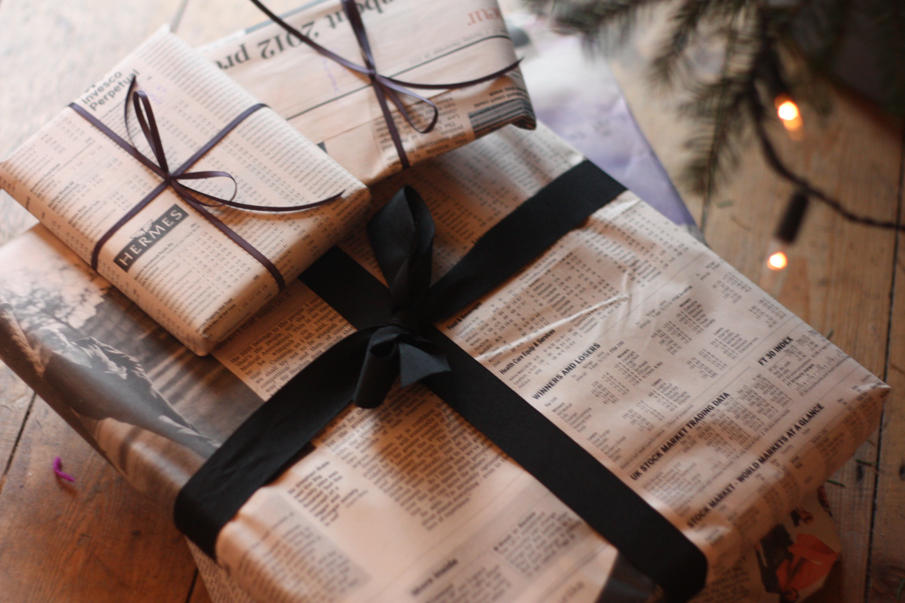 I love the ribbon around the FT newspaper/wrapping paper – looks brilliant.