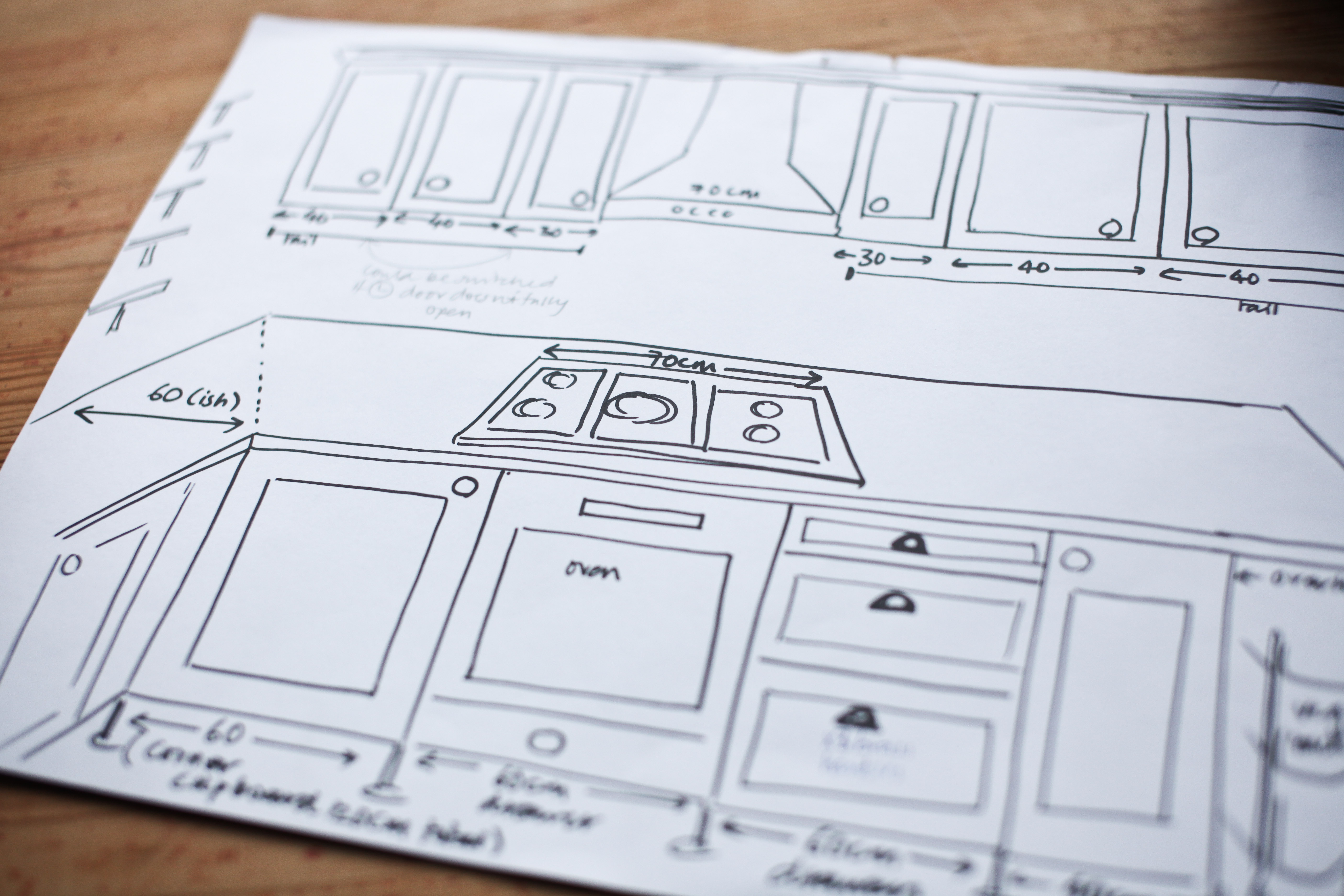 However, our troubles with our parallelogram kitchen was nothing compared to the consternation and sheer puzzlement we were met with when arriving at Ikea with…..wait for it…..drawings!! I mean, drawings!! Ikea rely on some sort of unworkable on-line kitchen planner, into which you input your cabinets by the proverbial drag-and-drop. Fine for the kitchens that are geometrically inclined, but not ours. We were then officially excluded from the office while Brian (I still remember you dear Brian) attempted to input our carefully worked drawings into the computer by his own sheer guesswork and interpretive surmise. After a series of begrudging adjustments to our order, delivered with a healthy disdain, we walked away with our £2500 worth of merchandise.