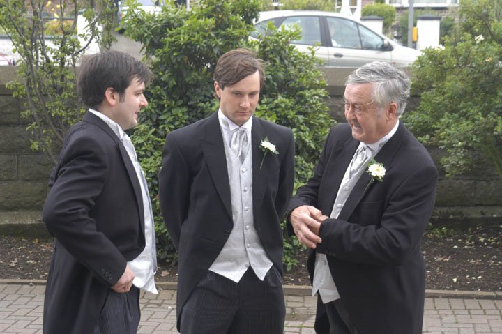 ...the groom's father is watching the time...